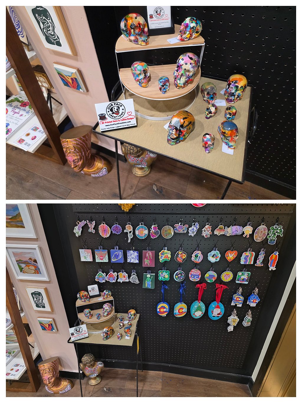 You can find our 3D printed keychains, magnets, ornaments, and recycled skulls at Wayward — a vibrant local shop in Downtown Fort Collins celebrating handmade, vintage, and local art.